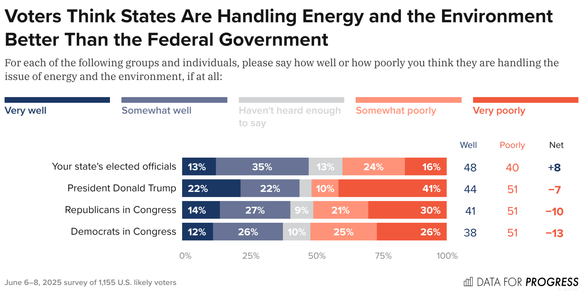 From June 6 to 8, 2025, Data for Progress conducted a survey of 1,155 U.S. likely voters nationally using web panel respondents. The sample was weighted to be representative of likely voters by age, gender, education, race, geography, and recalled presidential vote. The survey was conducted in English. The margin of error associated with the sample size is ±3 percentage points. Results for subgroups of the sample are subject to increased margins of error. Partisanship reflected in tabulations is based on self-identified party affiliation, not partisan registration. For more information please visit dataforprogress.org/our-methodology.