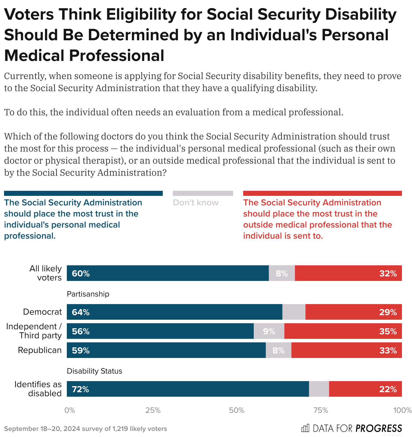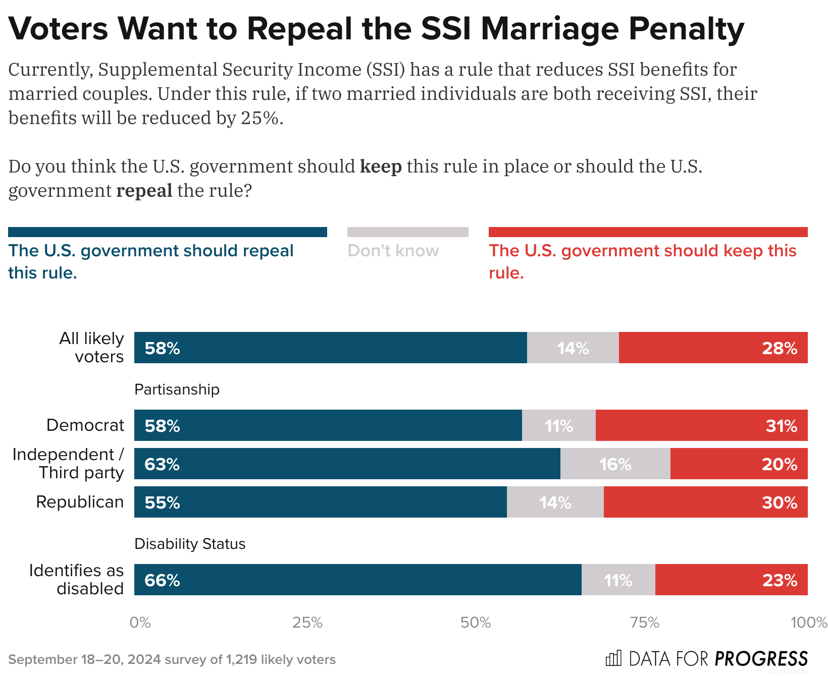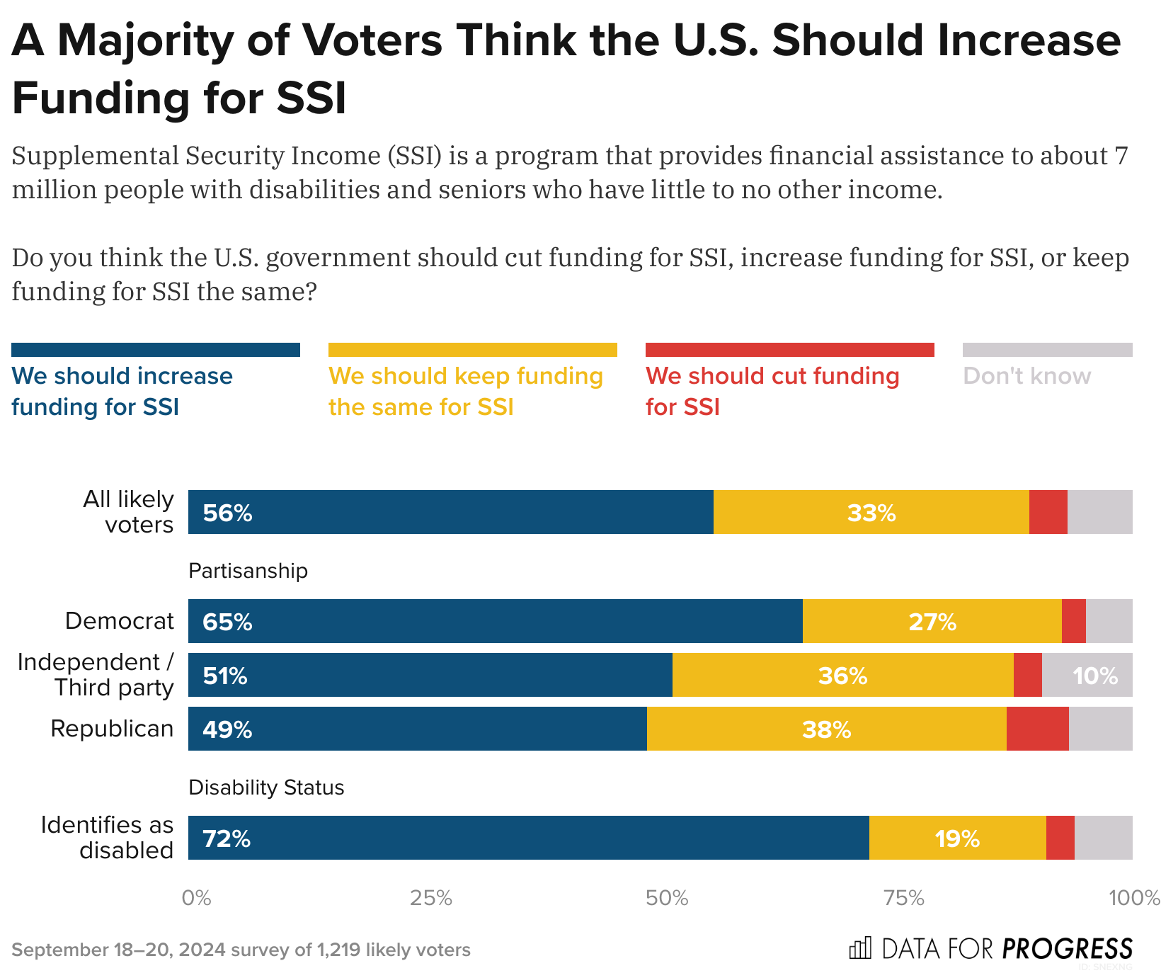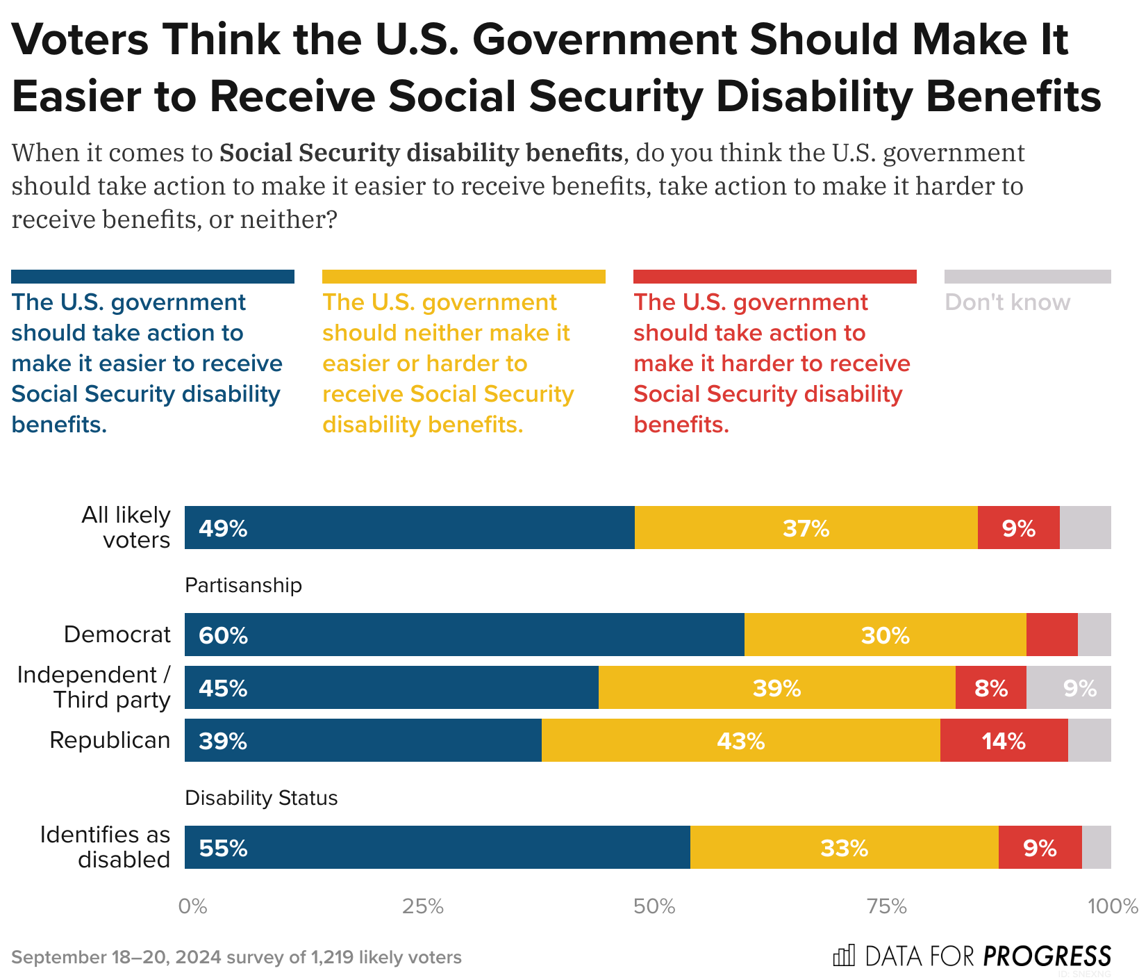 In a new survey, Data for Progress finds that likely voters think that the federal government should make it less difficult to get disability benefits and demolish the barriers that keep some disabled beneficiaries from marrying.